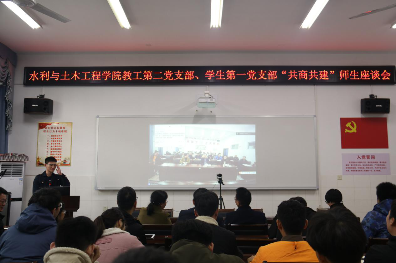 在随后的师生党员座谈会上,大家就党员发展、考研中遇到的问题和未来就业方向等方面进行讨论交流,并提出了解决方法和建议。