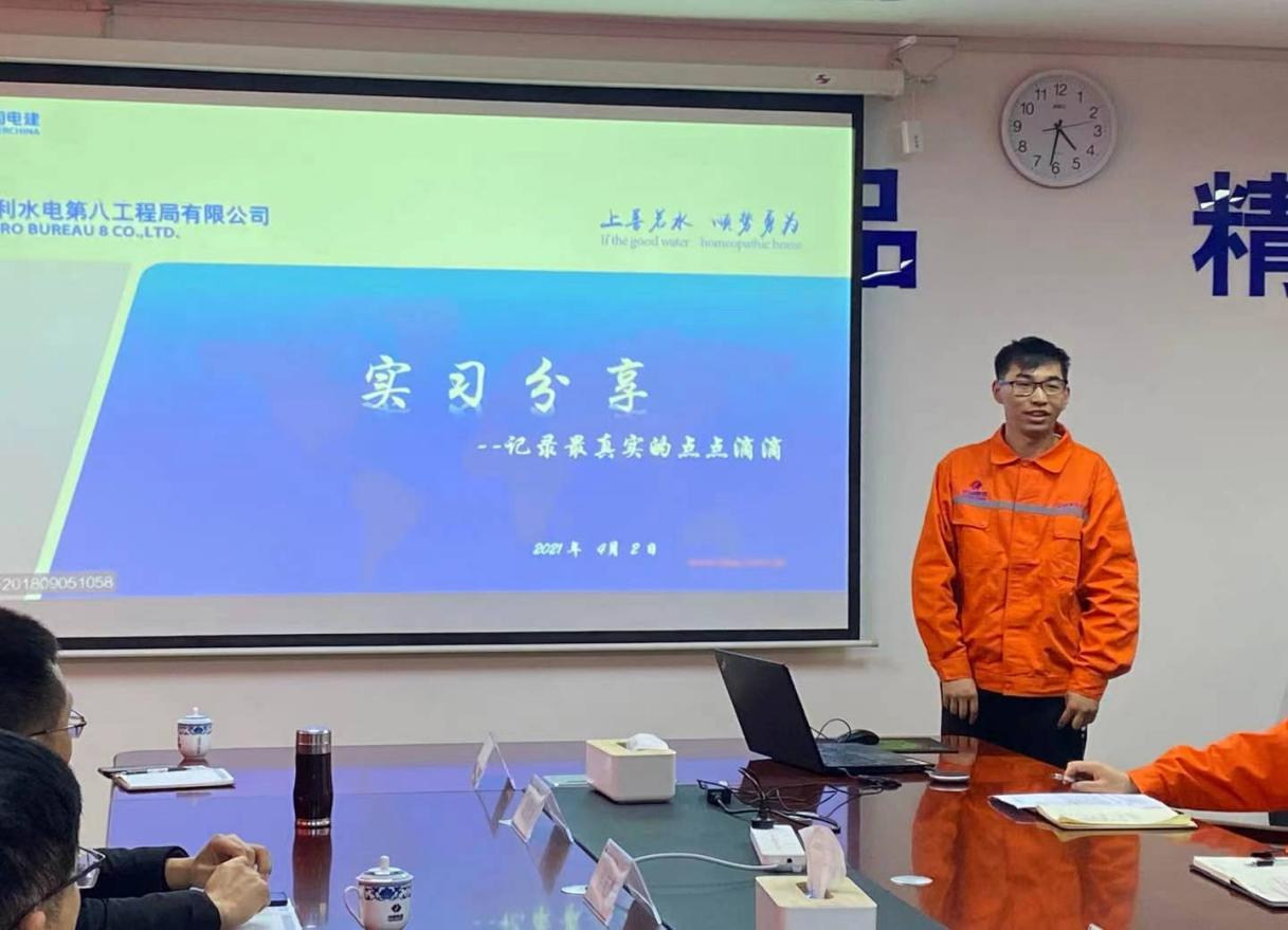 教工第一党支部教师在水电八局长江大保护浏阳项目部座谈调研时,听取了程炯同学代表实习生进行的实习汇报,程炯同学表示,来项目实习的三个月让同学们深切感受到了项目部的人文关怀和对实习生全方位的培养和锻炼,让实习同学都受益匪浅,为毕业后顺利走上工作岗位奠定了坚实基础。项目部的负责人对公司员工实习表现给予了充分肯定。