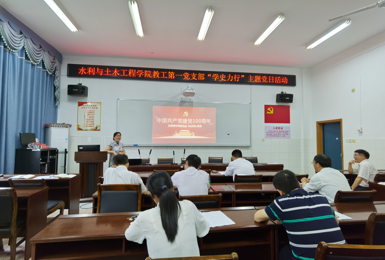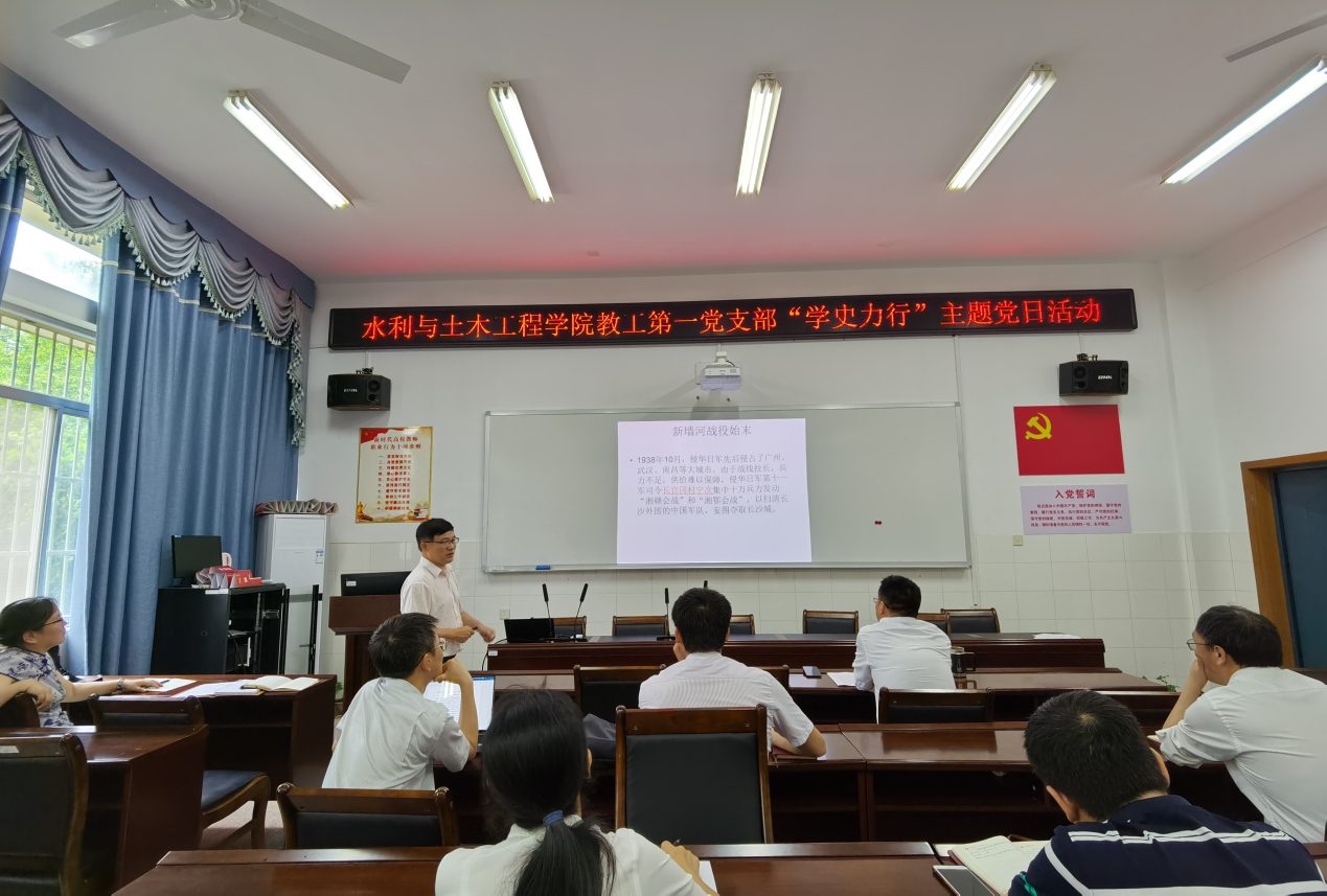 会上,黄理军和谭帅老师分别以《岳阳新墙河——血与火铸成的“英雄河”》、《学党史 悟思想,习近平讲党史故事》为题进行了“微党课”的分享和学习。随后,结合“学史力行”主题,全体党员就水利水电工程专业教学科研等方面开展了交流和讨论。