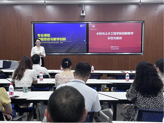 本网讯(龚柔艳 肖欢)在第39个教师节来临之际,为提高教师教学创新改革水平,促进公司整体教学质量提升,vsport于9月8日下午在十教南619举办创新教学示范及座谈交流会。特邀主讲嘉宾为荣获第三届全国高校教师教学创新大赛新农科正高组二等奖和湖南省普通高校教师教学创新大赛一等奖的风景园林与艺术设计公司副经理黄炼教授,教务处副处长李方一、公司领导、公司督导团小组、教学基层组织负责人、全体专任教师及教务主任参加了本次交流会,会议由副经理肖卫华主持。