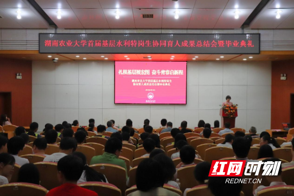 “大江东去,海晏河清”雄壮嘹亮的《水利颂》表达了水利特岗学子们对振兴中国水利、建设美丽中国的信心与决心。水利特岗毕业生代表王尉成分享了四年来服务基层水利,服务人民的成长故事,衡阳市珠晖区水利局黄维代表基层水利局作讲话,他希望特岗生们坚定扎根基层的信念,保持奋斗姿态,不断提升自己,为未来打下坚实基础。