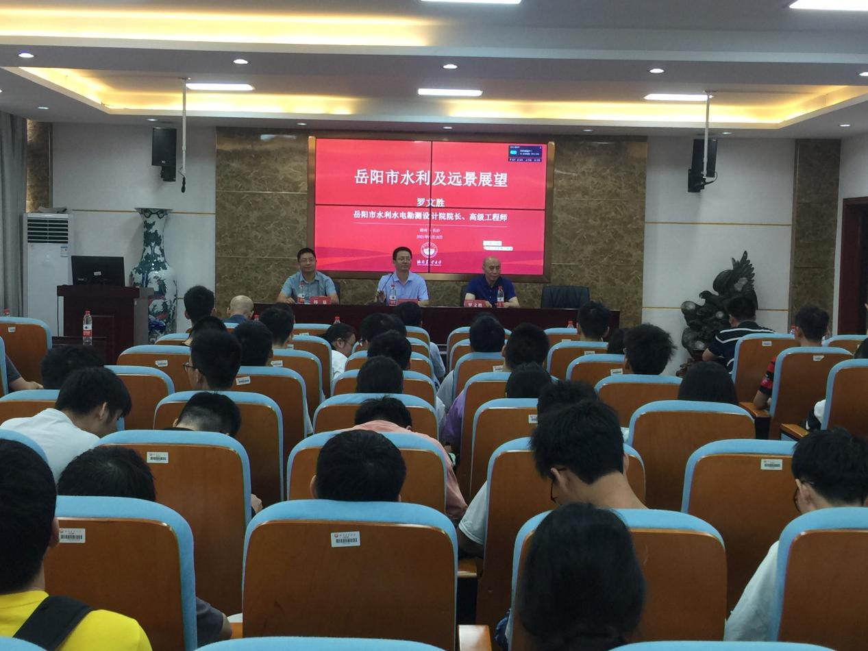 罗文胜经理以《岳阳市水利及远景展望》为题,从独特的地形地貌及水雨情、水利工程的多样性、防汛任务的艰巨性和岳阳水利前景展望等方面,对岳阳市水利水情进行了全面详细报告。他热烈欢迎vsport的师生到岳阳市开展教学科研、生产实习,真心希望优秀毕业生来岳阳市工作,共创岳阳水利事业新篇章。