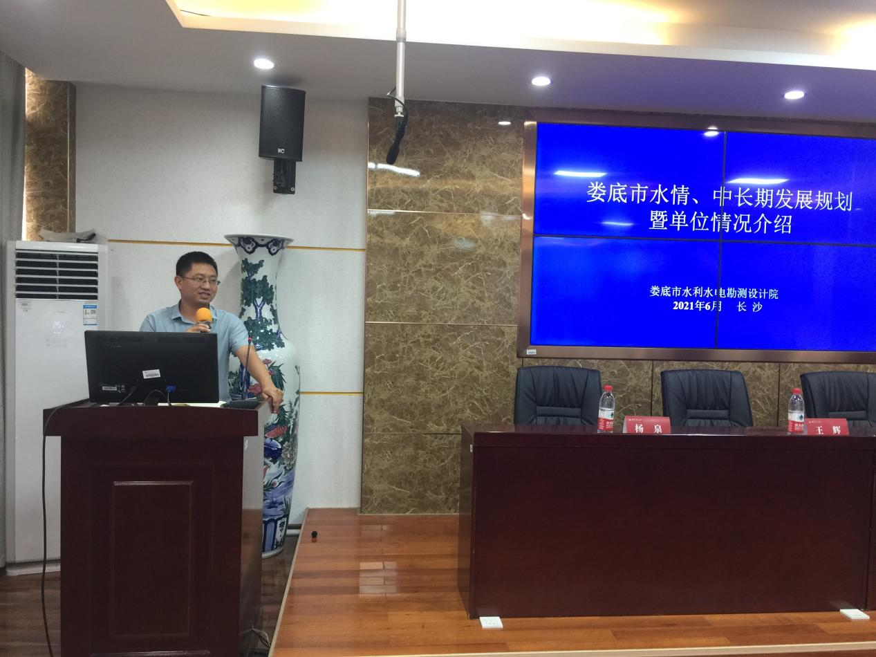 杨泉书记以《娄底市水情、中长期发展规划》为题,从水安全发展战略、娄底市水情、娄底市水安全保障总体思路、水利专业就业的方向以及娄底市水利水电勘测设计院院情等方面,对娄底市水利基本情况向在座师生进行了介绍。他期待双方加强沟通和联系,欢迎湖南农大师生到娄底市开展教学科研合作。