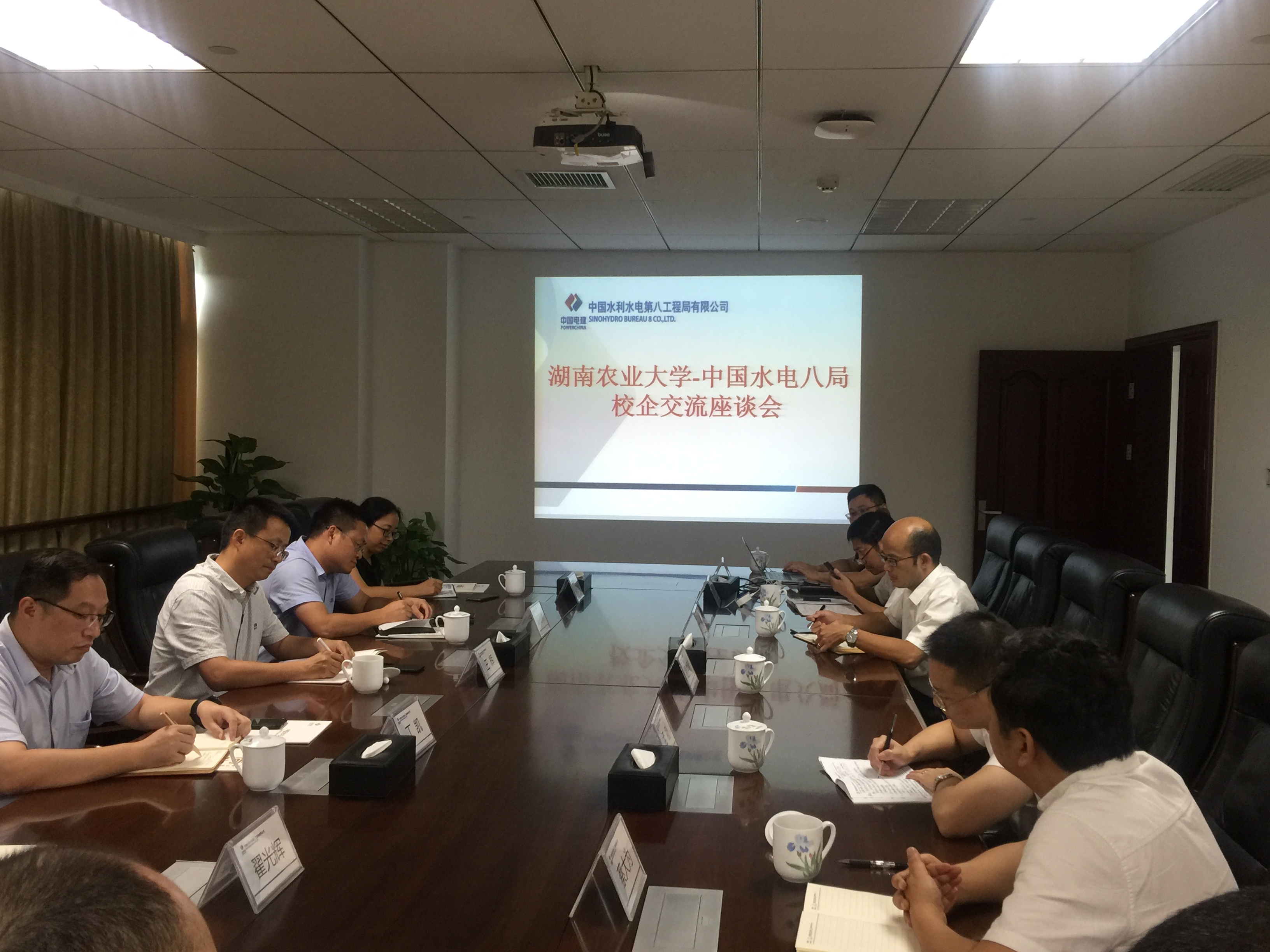 交流会上,中国水利水电第八工程局有限公司人力资源部副主任蔡大为首先介绍了水电八局的基本情况、发展历程、发展战略和企业文化,重点介绍了近年来校园招聘的情况,希望有更多的农大学子加入公司队伍。王辉经理、胡德勇书记长介绍了公司和公司的基本情况,感谢水电八局各级领导多年来对农大学子的关照,希望公司今后能给予更多支持,进一步加强校企合作力度,公司将紧盯行业需求,及时调整人才培养模式,做好办学转型发展,确保公司培养同企业需求实现无缝对接。随后,中国水利水电第八工程局有限公司水电公司、基础公司以及技术部门负责人分别介绍了各公司(部门)的基本情况,双方并就水利行业发展、人才培养、就业实习、加强校企合作等方面进行了深入交流。