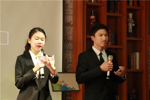 大会伊始,主持人向在场观众介绍到场嘉宾并为大家播放了一则创业视频,让在场的员工对创业有了初步的了解。随后,两位团队负责人详细地介绍了自己团队的创业历程。其中顾济珍讲述了从初入团队到第一次参加比赛获奖的历程。她表示,“世界那么大,确实要走出去看一看。出去比赛,视野会变得开阔。可以知道天外有天,人外有人,发现自己的不足,了解学习他人的优秀技术”。刘晓华同学重点为同学们介绍了自己团队的项目与创业动机,分享团队如何从复活赛成功进入决赛的创业故事。