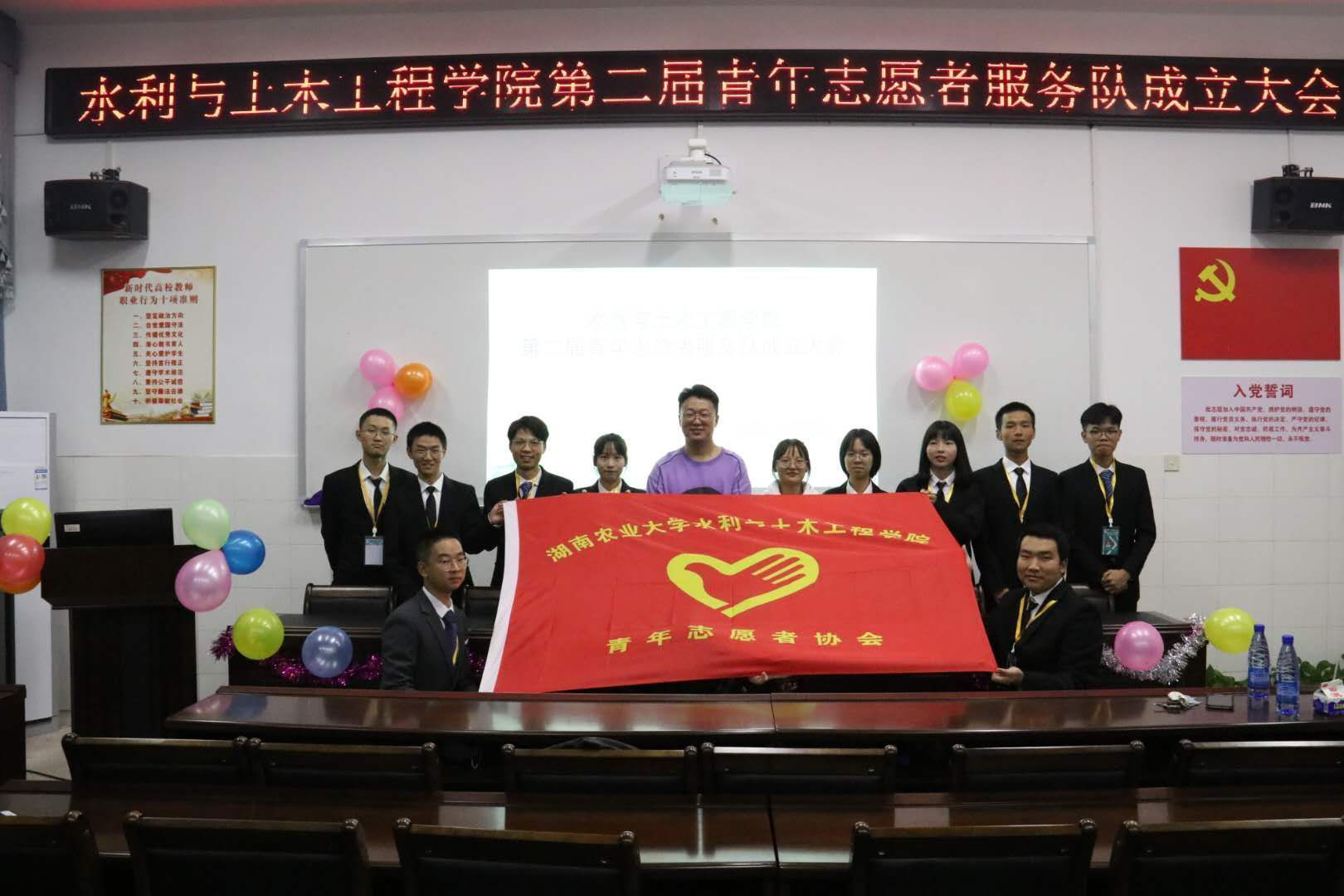 会议最后,新一届青年志愿者们宣读誓词,并献上歌曲《年少有为》,在歌声中,vsport青年志愿者服务队成立大会圆满结束。