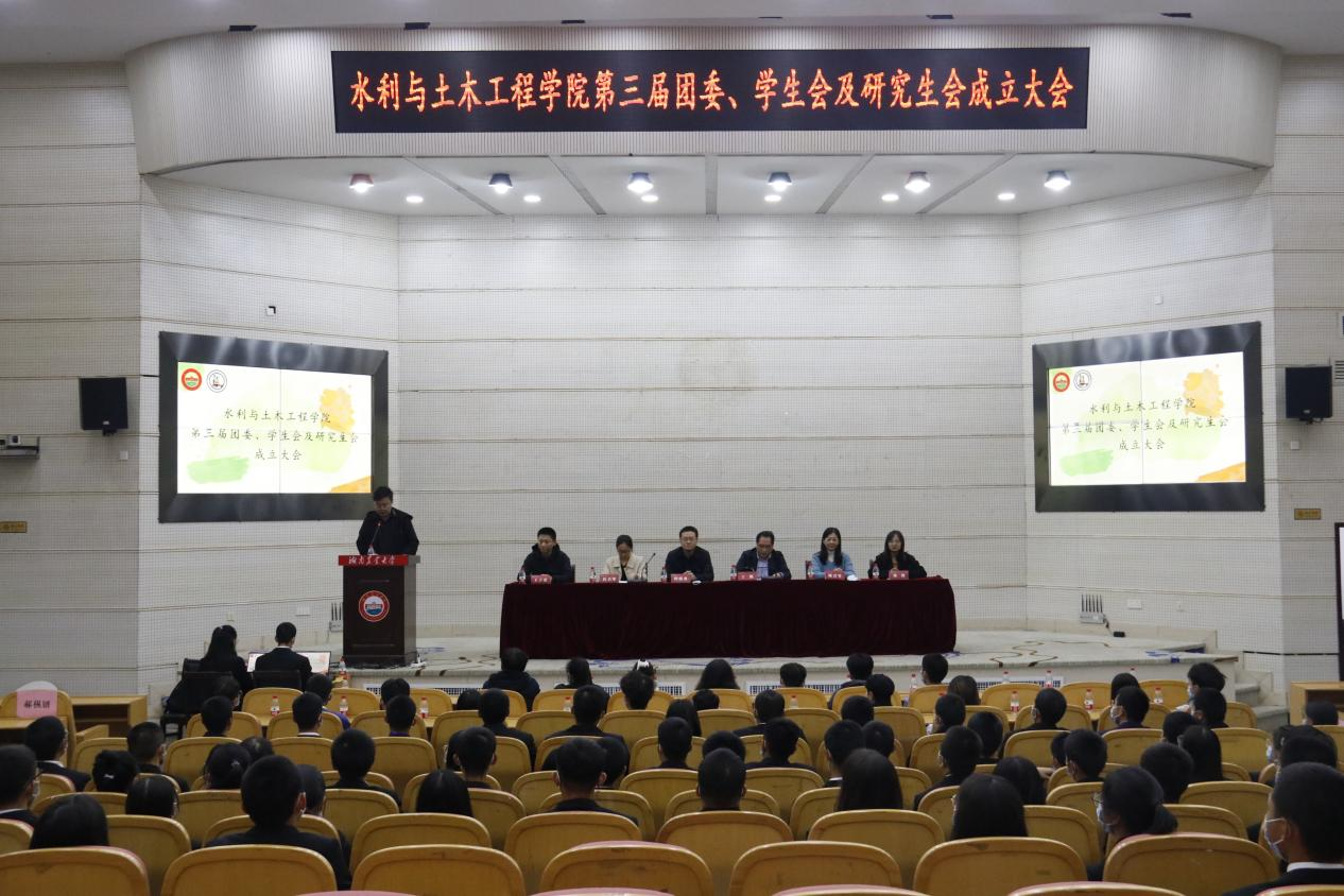 本网讯(通讯员 伍润东 张骞)10月22日晚上,利与土木工程公司在大成厅举办公司第三届团委、员工会及研究生会成立大会。公司党委书记胡德勇、党委副书记丁凯、副经理肖卫华及学工办陈音竹老师、王子希老师、邓澳老师莅临本次大会。大会由学工办白东明老师主持。