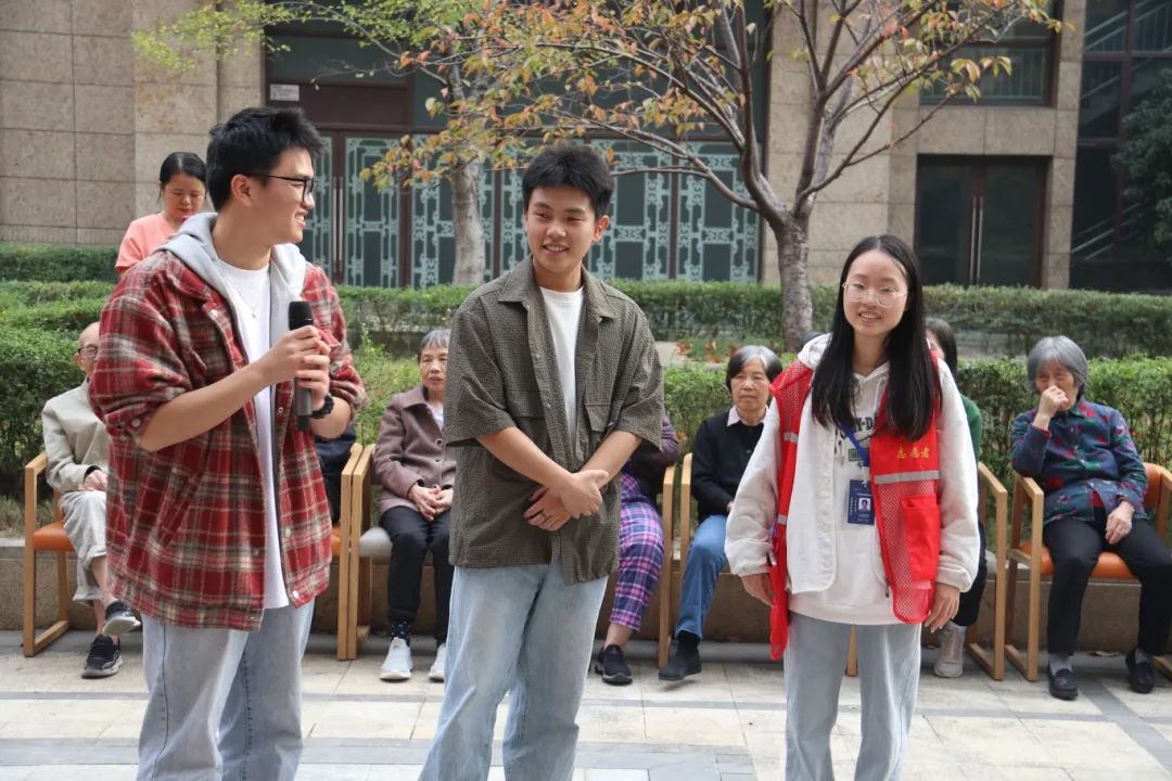 随后,志愿者们齐声合唱《生命之水》《水之爱》《滴水之恩》等歌曲,用歌声传达关怀与爱意,志愿者在歌声中与老人们互动交流,拉近了与老人之间的距离,老人们在歌声中欢快的拍手,帮助老人减轻孤独感和焦虑情绪。来到涓流律动环节,志愿者表演节水手势舞,带领老人们进行简单的手势学习,营造温馨和谐的氛围。