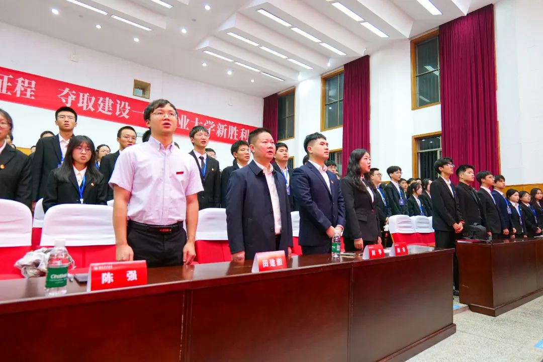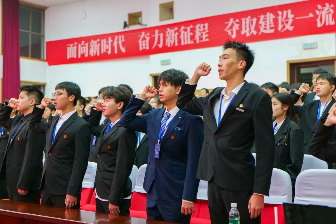 誓言铿锵,责任在肩。会上,本届团委员工会主席团代表张秋博带领全体团学干部庄严宣誓。