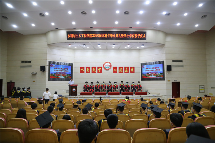 大会在庄严的国歌声中拉开了帷幕。首先,公司党委书记胡德勇宣读了《vsport2020届本科毕业生学士学位授予审核决议》,并对2020届毕业生顺利毕业,取得学士学位表示祝贺。随后方逵、裴毅、王辉、胡德勇、刘保华、任述光、周锡玲、吴友杰、许文彬、张龙文老师于大成厅向水利水电工程、土木工程毕业生颁发学士学位证书并拨穗。肖卫华、吴凤平、李明孝、吴懿、王文萱、王玮、武芸、崔钢、胡雅清老师于学海厅向工程管理毕业生颁发学士学位证书并拨穗。