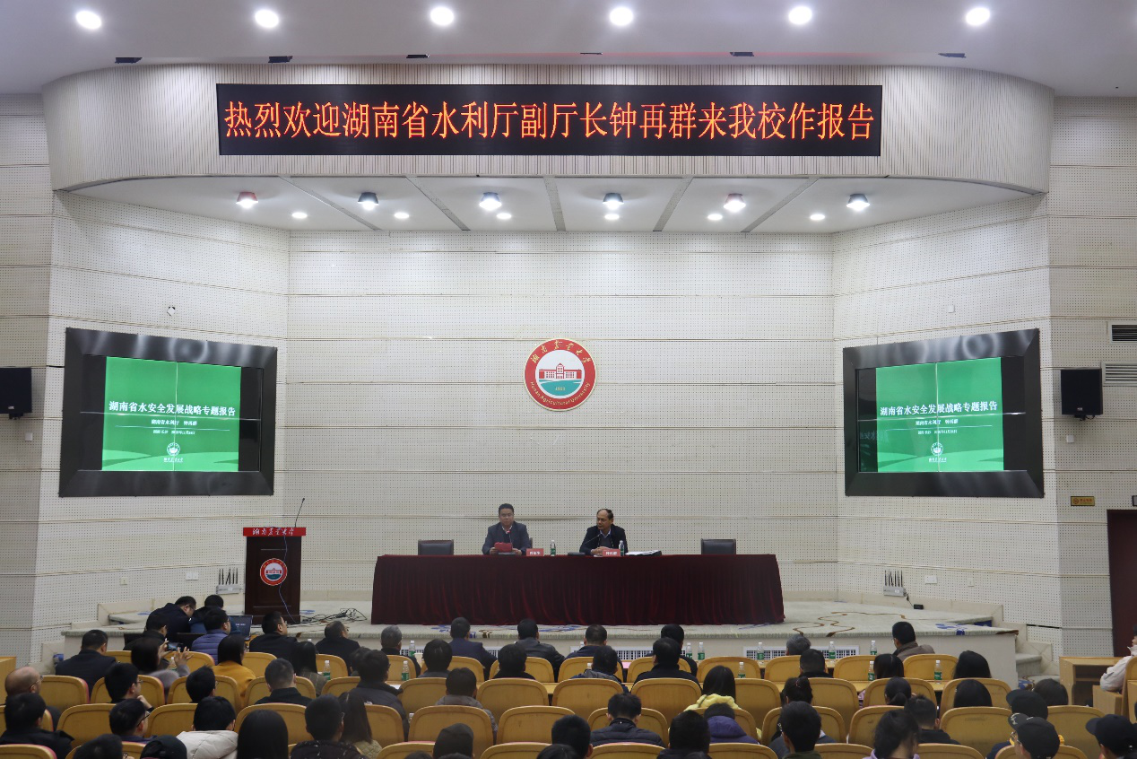 钟再群副厅长从水安全问题的由来、湖南水情分析、水利发展新视角、湖南水安全战略格局和值得思考的重大问题等5个方面分析了湖南省水安全发展战略。他指出,水安全问题是国家战略、时代要求、重要战略举措,湖南作为水利大省,河网稠密、湖泊众多,水问题治理难度大、任务繁重,他希望vsport胜利因您更精彩的师生能够建言献策,积极参与到湖南水利事业的建设和发展。整个报告会气氛活跃、互动热烈,在提问环节,在座的师生纷纷与钟再群副厅长进行互动,提出了自己在科研、学习等方面的问题,钟再群副厅长一一进行了详细的解答。