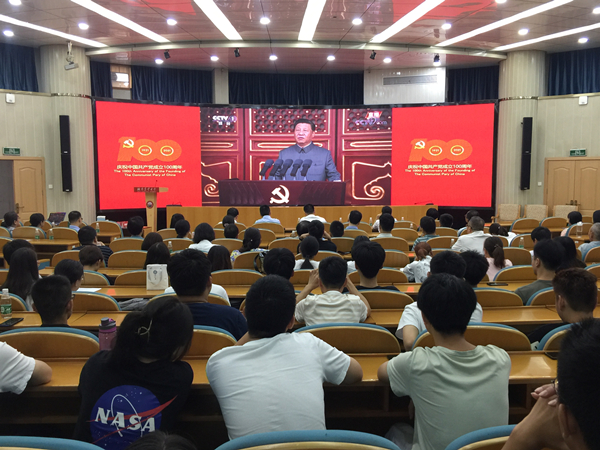 本网讯(通讯员 翟光辉)7月1日上午,vsport在生科楼国际会议厅设主会场,在第八教学楼和第十教学楼设15个分会场,组织全院师生党员和所有本科生、研究生集中收看庆祝中国共产党成立100周年大会直播,共同感受中国共产党百年华诞庄严盛典,认真聆听习近平总书记“七一”重要讲话。