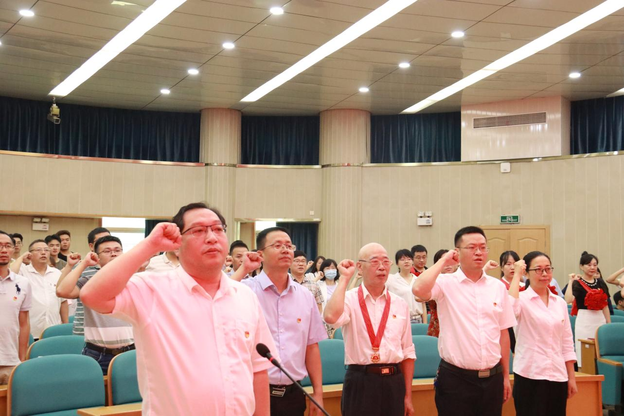 会上,丁凯副书记带领2021年新发展党员进行入党宣誓,老党员一起重温了入党誓词。全体党员身着正装,胸前佩戴党徽,神情庄重,精神饱满,集体宣读了入党誓词。
