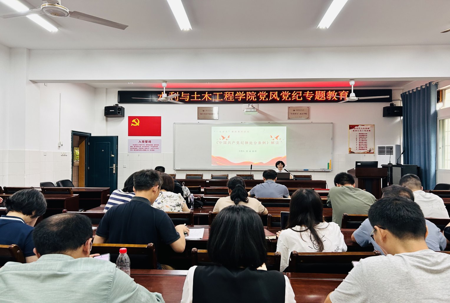 唐琳围绕新修订的《中国共产党纪律处分条例》(以下简称《条例》),从《条例》修订的重要意义、“六项纪律”的主旨要义、抓好《条例》的贯彻执行等方面结合具体案例,为全体教职工讲授了一堂明规守纪的纪律党课,引导全院师生党员深刻理解《条例》的精神实质。